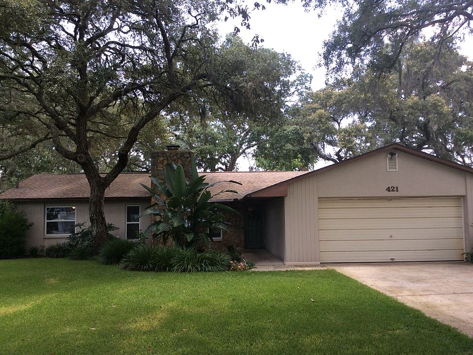 Home sits on a beautiful 1/2 acre manicured lawn with lake behind. Salt maintained Heated Pool 15x30 with Pavers surrounding this large pool. Extra Lanai Space and Sitting area under roof for shade. Wood burning Fireplace, Newly Painted inside and updated, Roof & A/C are in good condition. Master Bedroom is very large with attached bath and walk in closet. The 2nd & 3rd bedroom are very spacious.