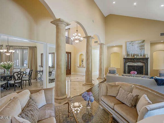 Beautifully appointed custom 6498 Square foot estate on 1.25 acres of park like grounds! This 5BD+8BA include two pirmary suites. The ground floor suite includes a dual sided marble fireplace, spa tub, large glass shower, walk in closet, private patio that leads to the rear grounds. The second private suite includes a wet bar, private terrace with views of the grounds and full marble spa bathroom retreat along with a huge walk-in closet. This custom home features a gourmet chef kitchen w/ large island, custom cabinetry, gorgeous granite, SubZero, Wolf and Cove stainless steel appliances plus butlers pantry w/ warming drawer and wine fridge. Kitchen spills into oversized family room w/ custom cabinets and cozy fireplace. This home features a formal entry w/ stunning views of lush backyard, formal living room, formal dining room, oversized bedrooms.The yard features two built-in BBQ areas, two outdoor televisions, fire pit, putting green, working greenhouse, 4 fountain, 3, indoor fireplaces, sparkling pool with many rock waterfalls, and a huge water slide, spectacular walkways throughout, gorgeous rose garden, and an orchard with orange, lemon, apple, avocado, plum, peach, apricot and lime trees. The stunning guest house includes newer tile flooring, custom window coverings, a kitchenette and so much more.This is the haven you are looking for.