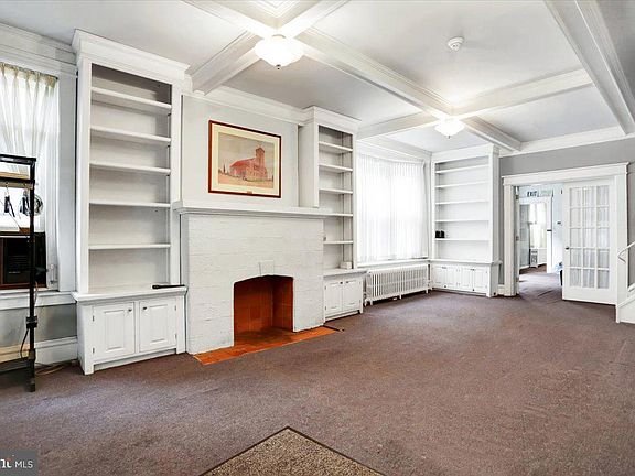 SPACIOUS END ROWHOUSE IN CENTRE PARK: Located in the heart of Centre Park, this well-built row home sports an elegant stone face, a large living room with a decorative fireplace, and lots of built-in shelving. French doors invite you into a spacious dining room, adjacent to a large kitchen space and half bath. The second floor contains 4 bedrooms, one with a turret alcove and two with bay/bow windows, a vintage ceramic tile bath (with stained glass window), and entrance to a rood deck over the back yard. The third floor have 2 bedrooms, one with a turret alcove. Five bedrooms have oak flooring; one has pine. IMPORTANT NOTICE: The current owner used the home as church offices, so the kitchen has no appliances. The kitchen sink was replaced with a small utility sink. The room is full of spacious perimeter cabinets and a peninsula, but adjustment will need to be made to return it to a functioning kitchen. Also, the hot water heater is for limited volume and would need to be replaced by a domestic-sized unit. The roof deck was replaced.