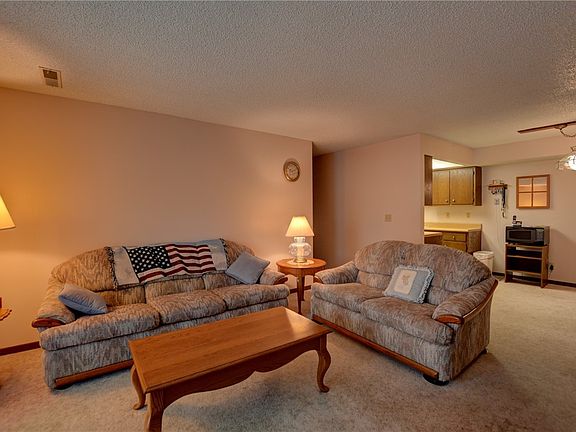 Cute 2 bedroom, 1 bath condo on the second floor. Spacious living room with newer patio door to small deck. Kitchen with appliances, dining area and pantry. Huge master bedroom with walk in closet. Nice size spare bedroom, hall full bath and this unit has a laundry room! Updates include: interior paint, refrigerator (3 yrs old), Pella patio door with blinds (5 yrs old). The furnace/water heater are located in the utility closet in the hallway prior entering the condo. The is additional storage in the community garage (bikes etc). Community laundry is located on the bottom floor of the building, however you have your own with this unit! Condo fee is $181 which includes water, cable, lawn care, snow removal, garbage. Carport parking is available for a fee, there is a waiting list.