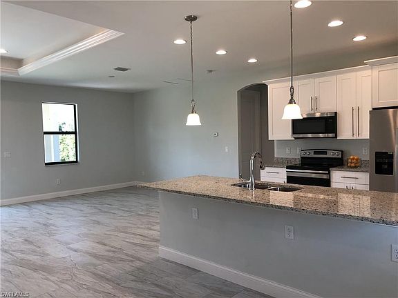 Beautiful New Construction,Built-in 2019 in SW Lehigh Acres. 3 bedrooms, 2 baths, 2 car garage.1583 living area, 2393 total. Tile flooring throughout, stainless steel appliances, granite counter tops in kitchen and baths, shaker style wood cabinets, dual cabinets, dual sinks in master bath, walk-in master closet, impact windows and sliding doors.