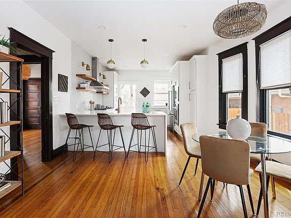 A very desirable location in Sunnyside, located just 2 blocks from the retail corridor on 44th with Denver favorites like Bacon Social House and Radiator Coffee, less than a half mile to Chaffee Park or a quick bike ride to the Highlands. Hosting guests will be a pleasure because of the proximity to nightlife and shopping, as well as the layout of the home, and the wonderfully updated-open and modern kitchen. The main level is truly light and bright, showcasing the attention to detail of the existing Victorian elements like the gleaming hardwood floors, original wood trim, tall ceilings and original fireplace that the Seller has cared for (they have gone to great lengths maintaining the original millwork). A spacious, enclosed sunroom overlooking the beautiful backyard is located adjacent to the kitchen. The bathroom and kitchen deliver functionality and visual appeal. Three bedrooms total (two on 2nd level, one next to bathroom on main level). The basement is partially finished and has a secondary large format family / hangout room with exposed brick, and plenty of storage options. A well designed and stunning private, fenced-in backyard, will entice you and your visitors to spend a great amount of time outside. You’ll be impressed with it’s size and orientation to host any kind of event or BBQ in the lawn under a large tree with plenty of shade. A pleasurable location and great floorplan help round out defining this Sunnyside property.