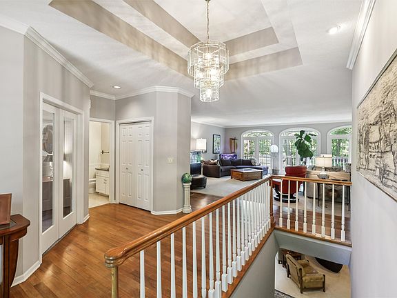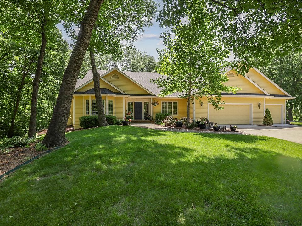Tucked into a beautifully wooded setting, this meticulously maintained custom-built walkout ranch offers over 3,800 square feet of finished living space designed for comfort, function, and style. From the moment you step inside, you'll appreciate the detailed trim work and stunning walnut floors that flow throughout the main living areas. The updated kitchen features high-end appliances, ample cabinetry, and a layout perfect for entertaining. A spacious formal dining room and a large office provide the ideal balance of work and gathering spaces. Two main-level half baths and a generous laundry/mudroom off the oversized 3-car garage add everyday convenience. The primary suite is a peaceful retreat with private views, a walk-in closet, and a beautifully updated en-suite bath. The finished lower level includes a cozy living room, two additional bedrooms with an updated Jack & Jill bath, and a large hobby or flex room—plus the bonus of direct access from the garage for added flexibility. Enjoy seamless indoor-outdoor living with an expansive deck, patio, and firepit—perfect for entertaining or relaxing while surrounded by mature trees and abundant wildlife. With a newer roof, newer exterior paint, and impeccable care throughout, this home blends natural beauty with high-quality finishes in a truly one-of-a-kind setting.