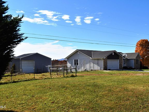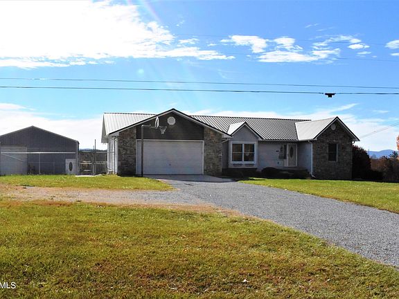 MOUNTAIN VIEWS! Detached 30x30 RV GARAGE/BARN with workshop! 3 ACRES! Enjoy the beautiful mountain views off your back deck in this 3 BR, 2 bath home with a gas log fireplace; eat-in kitchen AND separate dining room. Separate patio with hydrolic cabana/hot tub cover (prepped for hot tub). Roof and HVAC were replaced in 2020. Hot water heater 1 yr old. Fencing on property excellent for use as a mini-farm as well. *Buyer to verify all information before making an informed offer.