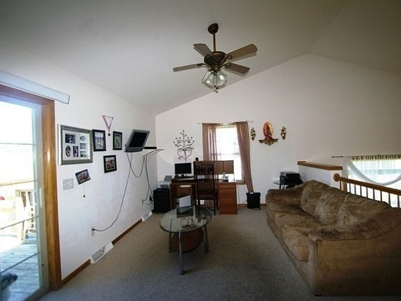 Exceptional home with open floor plan, vaulted ceilings and beautiful trim work and display areas throughout. This home features maple cabinets, island, ceramic tile in the kitchen and dining room. Sliding glass doors in the living room lead to deck for ease of outdoor entertaining overlooking farm fields.