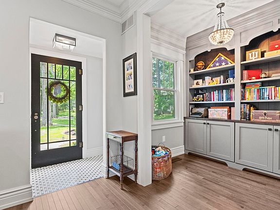- 1st Bdrm En Suite, Breakfast Bar, Sound System, Bookcases, Ceiling-9+, Ceiling Fan(s), Walk-In Closet(s), Stone Counters, Crown Molding, Entrance Foyer, Soaking Tub, Kitchen Island, Natural Woodwork, Open Floorplan, Pantry, Stand Up Shower, Tub/Shower Combination, Formal Dining Room, Custom Cabinetry