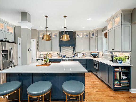 BREATHTAKING gorgeous home on .39 acres in sought after BEDFORD at Falls River! Screened Porch! HARDWOOD floors! GOURMET Kitchen features gas range, copper sinks, transom cabinets, designer backsplash, quartz countertops, walk-in pantry & wine cooler. Dishwasher/range/microwave-2021! Breakfast room. Formal dining. HVAC-2024. Tankless water heater-2024. Roof-2011. Owners Suite features SITTING ROOM w/fireplace, tray ceiling, his/her walk-in closets, double vanity, water closet & garden tub. 2 bedrooms w/new carpet. WALK-UP 20x34 attic space is plumbed. Outdoor stone fireplace & ginormous patio. Irrigation system. ENCAPSULATED CRAWL SPACE!