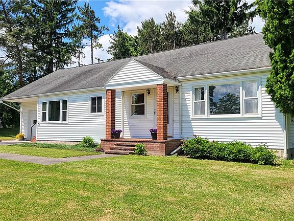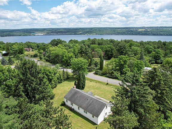 Discover the enduring appeal of this mid-century ranch-style home, built to last and filled with charm. Situated just outside Ithaca on the west side of Cayuga Lake, this delightful residence is steps from the scenic 8.4-mile Black Diamond Trail, connecting Taughannock Falls to Cass Park. Enjoy the privacy of a scenic country road setting. Inside, vintage features include a stone fireplace with a wood stove insert, arched doorways, hardwood floors, and natural wood trim. The renovated kitchen boasts cherry cabinets, granite counters, a subway tile backsplash, and an island with breakfast bar. Adjacent is an open dining room and a spacious living room highlighted by the stone fireplace. The updated main bath features in-floor radiant heat. This home offers 4 bedrooms, 3 with hardwood flooring, high-speed cable internet, and a finished lower level with a family room and half bath. Additional amenities include a one-car attached garage, a paved driveway, and attic storage. The expansive lawn with a paver patio is perfect for outdoor entertaining. Enjoy easy access to Ithaca and Trumansburg from this charming home, offering a perfect blend of rural tranquility and modern convenience.