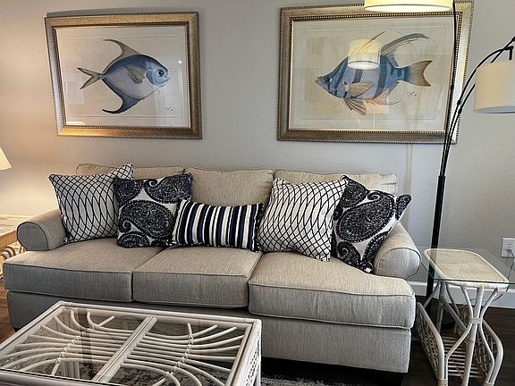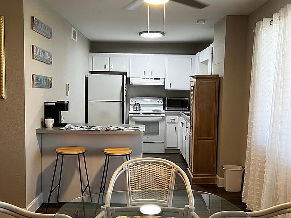 Furnished unit. Owner pays for water, sewer, garbage, Cable TV., Internet, Electric. No smoking. No pets. One assigned parking place #11. Bedding, towells, fully equipped Kitchen. Laundry facilities on each floor. 50 cents wash, 25 cents dry. Remodeled unit, furnished with a beach theme. Clubhouse with pool, sauna, exercise room, pool table. Please give 2 weeks for Condo association approval. $100 per adult association background check required.1 king bed sutible for 2 people. 3 month rental available only November 1 2022 through February 28, 2023