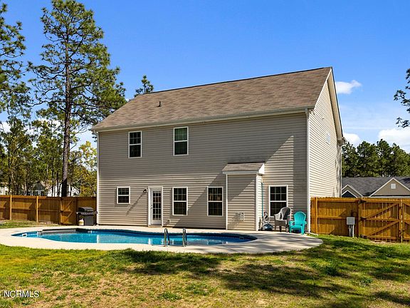 This well-maintained home is better than new construction (only 3 years old), but has all the features you don't get with a new build: An in-ground saltwater pool, a large concrete patio, and a custom shed that could become your pool house! A six-foot privacy fence encloses the beautiful backyard. The raised garden beds with irrigation, and chicken coop/area rounds off this large outdoor oasis beautifully. You enter the home from a covered front porch that fits rocking chairs beautifully. Step inside and you will find a move-in ready home with fresh neutral paint, LVL floors, granite countertop, and blinds throughout. There's plenty of space for everyone in the large well-lit bedrooms.10 minutes from downtown Aberdeen and Historic Pinehurst. 15 minutes from Southern Pines and 30 minutes to Fort Bragg. Close proximity to world-class golf courses, breweries, shopping, and more!