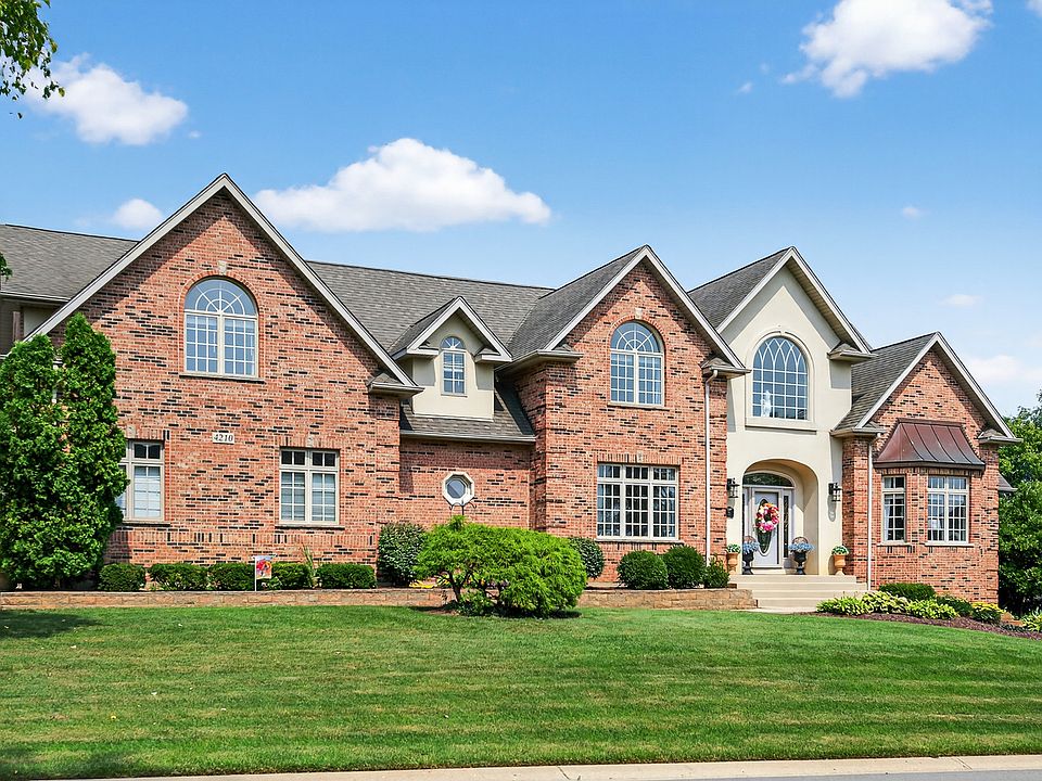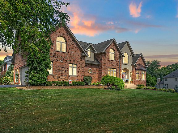 Welcome to this stunning, spacious all brick home situated on a coveted corner lot spanning more than half an acre. From the moment you step into the grand foyer entrance, you'll be impressed by the elegant design and thoughtful layout. Engineered hardwood flooring, installed within the last few years, flows seamlessly throughout the entire first floor. The custom kitchen offers an abundance of cabinet storage and generous countertop space, complete with a large island featuring a cooktop and seating-perfect for entertaining or casual dining. The kitchen opens to the expansive living area, where one of the home's two fireplaces creates a cozy focal point. A private first-floor office with French doors offers a quiet space for work or study. You'll also find a formal living room and dining room, ideal for hosting guests or holiday gatherings. Convenience meets functionality in the laundry/mudroom, located just off the attached 3 car garage-perfect for busy lifestyles. Upstairs, you'll find lush carpeting throughout the hallway and all four bedrooms, each featuring vaulted ceilings and large walk-in closets. A shared Jack and Jill bathroom connects two bedrooms, with private sink areas for added comfort. Natural light pours in from large windows, creating a bright and inviting atmosphere. The oversized primary suite is a true retreat, offering multiple closets and a luxurious en-suite bath with a whirlpool tub, separate shower, and ample space to unwind. Custom light fixtures throughout the home add a unique and stylish finishing touch. The finished basement expands your living and entertaining space with an additional flex room and full bathroom. The larger open space boasts another fireplace. And don't worry, there is still space for storage as well! From the lower level walkout you have direct access to the covered patio and built in stone firepit area. While outside follow the stone paved walkway to the upper outdoor oasis. Here you have sun drenched garden areas and ample room for seating. A new deck leads you to the gazebo area offering shade and a breezy escape on warm days to admire the professionally landscaped yard. This home offers the perfect combination of luxury, function, and outdoor enjoyment-all in a premier location. You do not want to miss out on this opportunity. Schedule your showing today and prepare to be amazed!