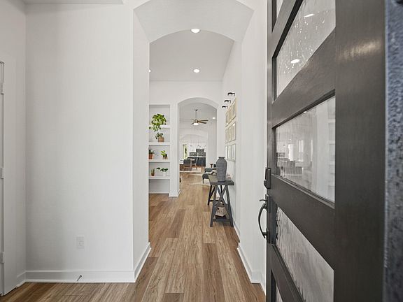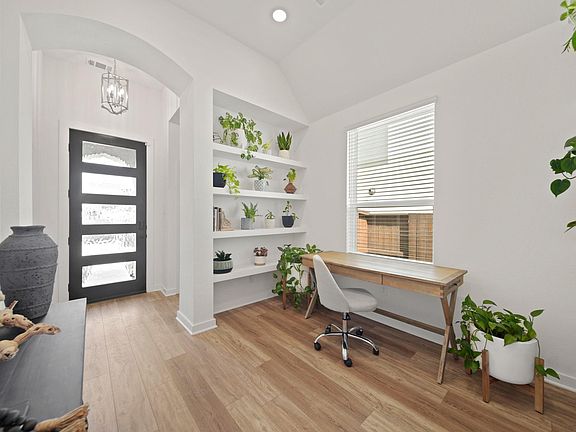 Welcome to this stylish single-story home located in the amenity-rich, master-planned community of Meridiana, zoned to great schools. Featuring 4 bedrooms, 2.5 baths, & a versatile den, this home offers both comfort & functionality. The spacious living room flows seamlessly into the dining area & open kitchen, creating the perfect setting for entertaining. The kitchen showcases updated countertops, a slate backsplash, stainless steel appliances, and a large island that elevates with style. The primary suite is filled with natural light & boasts a spa-like bath w/ dual vanity & oversized walk-in shower. Three secondary bedrooms provide generous space, one is currently transformed into a custom dressing room complete with built-in shelving. Additional upgrades include a built-in cabinet system in the laundry room for added organization. Step outside to an oversized patio overlooking a green space ideal for watching the sunset. This home perfectly combines modern design & comfort.