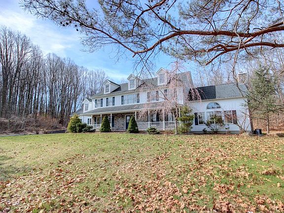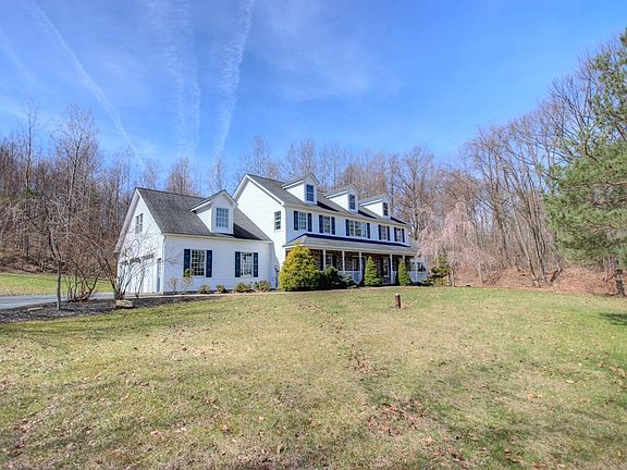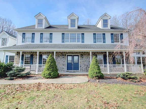Stately 2-story farmhouse style features a beautiful Bluestone facade & impressive dormers on a 3.25 acre site w/views of rolling hills, a horse farm & partially wooded backyard for your enjoyment. Covered front porch allows for hours of relaxation. The views will satisfy the most discriminating Buyer. The 1st floor of the home features Hardwood floors in the Foyer & Hallways, Formal Living Rm., Dining Rm., & Study. This classic styled home features spacious rooms, a beautifully appointed Kitchen with large ceramic tile flooring, granite counters, ample counter space & cabinetry. A dramatic 2-story Family Room with soaring 18' ceilings & a beautiful fireplace, a Study(which could double as guest/bedroom), large laundry/mudroom, 3 car garage w/entrance to the basement will complete the main floor. On the 2nd floor, Master Bdrm Suite has huge closet space, separate dressing area & an amazing Bonus Room. 3 additional Bedrooms, one with a Jack/Jill bath. Listed below market value!!