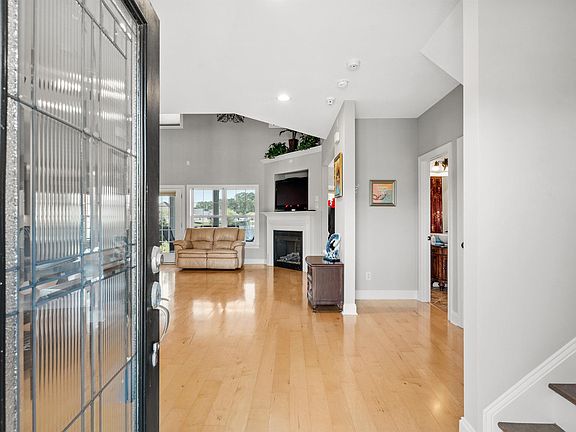 • Fireplace, Window Treatments, Breakfast Bar, Entrance Foyer, Kitchen Island, Stainless Steel Appliances, Solid Surface Counters
