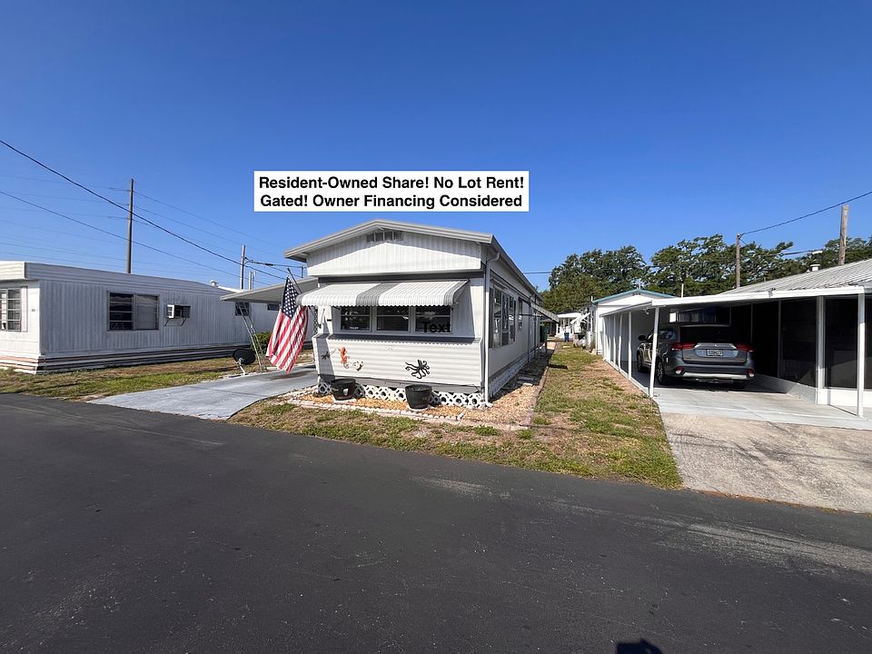 4210 Palmwood, Bradenton Florida 34203 Citrus Grove Estates This mobile home is a resident share in a gated community 55+ Age restricted Resident-Owned Share! No Lot Rent! Gated! Owner Financing Available! This 1BR/1BA resident-owned share is well-maintained, clean and comes partially furnished. There is fresh paint inside and out. There is laminate flooring in most of the home and carpet in the bedroom. There is an AC unit in the living area. The stove top/oven, microwave, and refrigerator are included in the sale. The home comes with a car-carport and a storage shed. This affordable home is perfect for year-round or as a seasonal living set up! Owner Financing is available for qualified buyers. Minimum of 50% down and a park approved background check required. Lot maintenance/HOA fee is $210mo. There is an additional $100mo assessment through end of 2025. HOA fee covers, water, sewer trash and lawn maintenance. Citrus Grove Estates Mobile Park is a 55+ community. Amenities include clubhouse and social activities. Gulf Beaches, several golf courses and some of the region's best shopping are all within 10 miles.