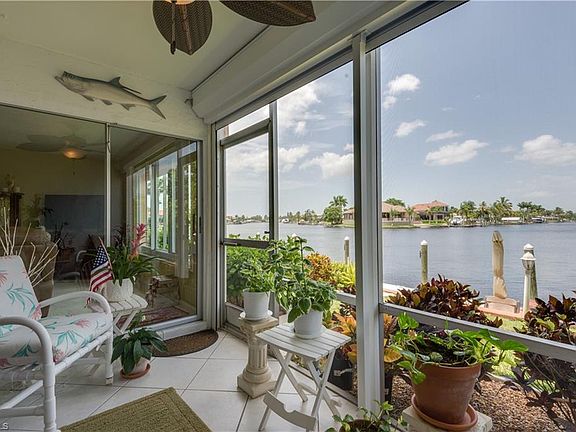 Waterfront first floor condo w/ direct sailboat access! Perfect location in SE Cape - dock space is available for your boat. Just seconds from the Caloosahatchee River by waterway and only a short walk/bike ride from the riverfront Jaycee Park. You will love living on wide intersecting canals in a West facing unit- great for watching the gorgeous SWFL sunsets from the tiled screened lanai! The large window systems in the Family Room & the Master Bedroom provide a wonderful view of the water. Handicap equipped with wheel chair access. The guest bath features a high-end therapeutic soaking tub. Updated w/ hot water heater in '17, impact resistant windows throughout, new carpeting throughout, electric storm shutter on lanai, and new hurricane garage door w/ new motor. The huge laundry room offers built in cabinets for extra storage in addition to the one car detached garage. This is an extremely well maintained non-gated community w/ only 20 units (10 in each building) offering a community pool w/ a view of the canal and a first come first serve community boat dock w/ electric.