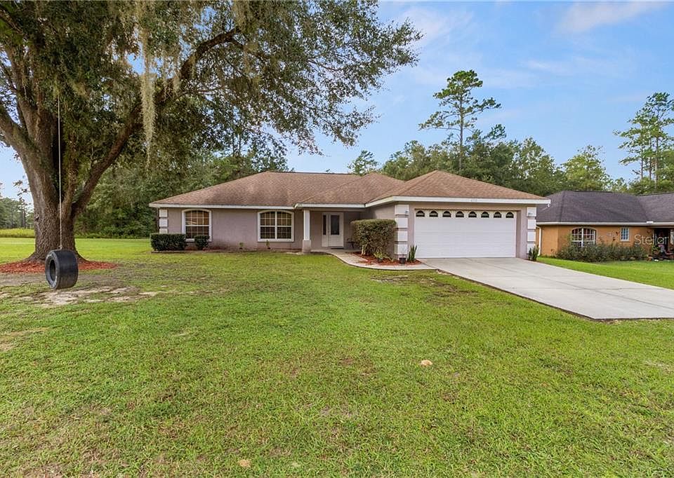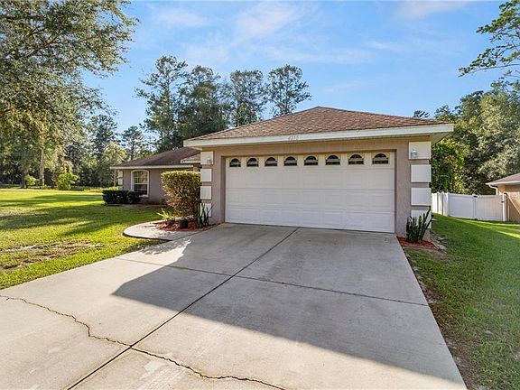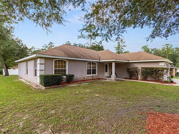 BACK ON THE MARKET!! Nestled just minutes from the family fun of Rainbow Springs State Park or the NEW WORLD EQUESTRIAN CENTER, this home's central location is perfectly centered around Ocala and Dunnellon. On nearly an half acre corner lot, home is just over 1900 sq ft. Oversized living room-dining room combination. The kitchen will soon become the focal point of all your family gatherings or quiet late night snacks. Inside laundry with separate wash tub. Principal suite is huge with massive walk in closet and large stately bathroom. Covered back patio overlooks the quiet privacy of the backyard. Don't miss out on this opportunity.