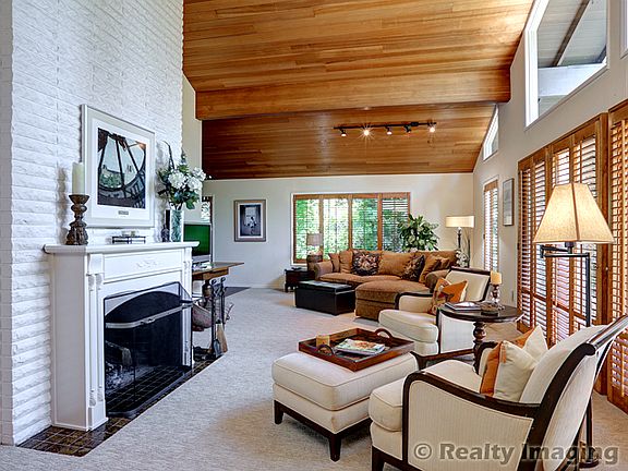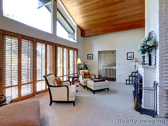 Stunning contemporary home in fantastic neighborhood. Your own hide-away in the hills situated in a quiet area, surrounded by nature and near great amenities. Living room has gorgeous vaulted wood ceilings and floor to ceiling windows that face South. Access the front deck from the living room and enjoy the outside- no matter the season. Enjoy newly installed hardwood floors, new living room carpet upstairs, and all new carpet downstairs. Wood burning fireplaces on each level. Master bedroom has bathroom and french doors that open out to a private deck. Well maintained with many upgrades throughout. Oversized lot has a deck and nice views of nature and trees. Close to Hillsdale shops, farmers market, library, OHSU, restaurants, trails to Council Crest, and much more.