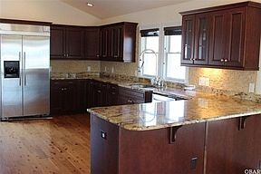 This beautiful 7 year old, 4 bedroom, 3.5 bath reverse floor plan offers unbelievable views of the ocean and sunrises. High end materials can be found throughout. The great room with soaring ceilings, large fireplace with stone surrond, and beautiful floors give great views of the ocean. But just up the stairs is a cozy ships watch loft that offers even higher views. The dining area joins the great room taken advantage of the views and the ambiance of the fireplace. The enormous kitchen boasts stainless steel appliances, gorgeous granite counter tops, walls of cabinets (some with glass fronts) with special features, and note the over stove pot faucet. A convenient high end half bath with large counter top sink and in wall faucet is just off the kitchen. A rear door leads to the back deck overlooking the rear yard, stone surround pool and tiki tables. A master bedroom with private bath is also on this floor. The mid floor offers a great central media room that could be an office .