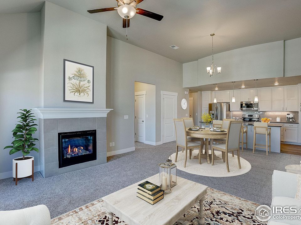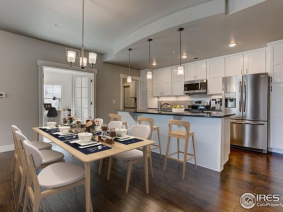 Includes w/d, blinds & refrigerator! Welcome to the North Shore Flats at Centerra by Landmark Homes. Lock & leave has never been so easy & secure! Single level ranch floor plans w/ elevator service, secured entry, high-end finishes, all w/ bright, open floor plans. Conveniently located close to shopping, banking, dining, medical facilities, outdoor recreation, & minutes to I-25. Master HOA & Metro District apply. Secure entry building, garages attached to an interior hallway, energy features such as high efficiency furnace & tankless water heater, & gorgeous designer selected standard finishes like engineered hardwood, quartz or granite counters, tile surrounds, under cabinet lighting, solid doors, stainless appliances & tile floors. Model open at 4128 South Park Dr. #100, Loveland 80538.