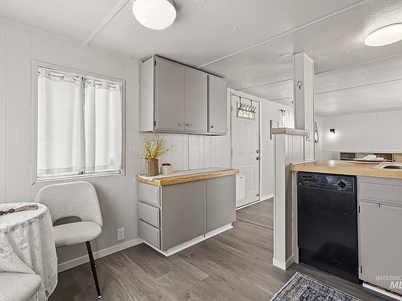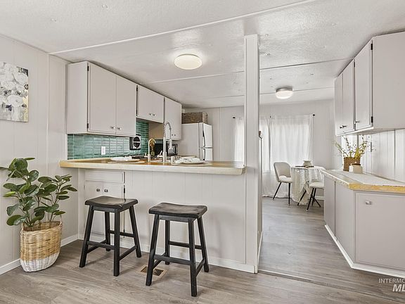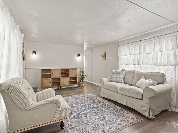 This sweet little home is quietly set back off a frontage road off W State Street in Boise, near Veterans Memorial Park, and walking distance to the Boise River Greenbelt, restaurants, and other conveniences. The home sits on an oversized lot with a nice, private, shaded patio with pretty trees and blooming shrubs, with parking for 3-4 vehicles. New flooring throughout. The kitchen has had many updates, including a new dishwasher and a newer range. All appliances are included. Includes a 10×12 shed that was built last year. Can be moved to your property or remain in this location. The park rent is $700/month and includes water, sewer and trash. Electricity and gas are the responsibility of the owner. Must be approved by property management before sale of property. Rim to River Property 208.407.1985 Cash only.