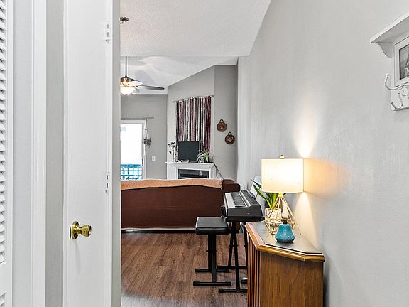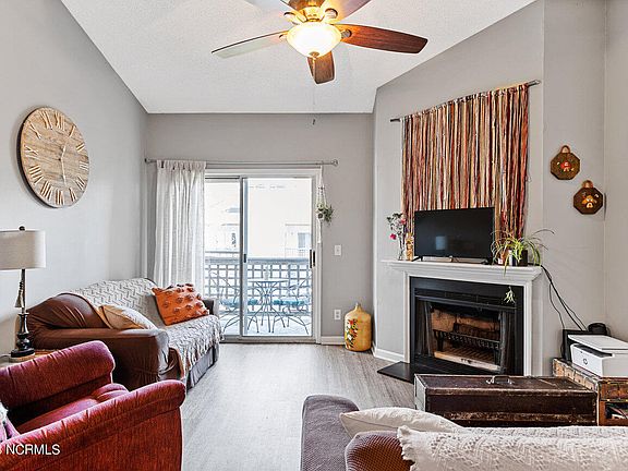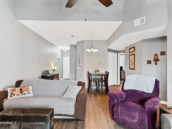 Cozy condo less than one mile from UNCW and convenient to restaurants and grocery stores. This two bedroom, two bath unit features newer LVP flooring, tiled foyer and kitchen, and newer paint. The spacious living room includes a vaulted ceiling, ceiling fan, a wood burning fireplace, and a pleasant view through sliding glass doors to the deck. The private deck offers a spot for relaxing and includes a storage closet. Water, sewer, trash and pool are included in the HOA dues. This third floor condo is located between residential neighborhoods and local businesses with a bus stop just across the street. It is also a quick drive to the beach or historic downtown Wilmington. This is a great opportunity for students and investors. Available to move in at the end of May, but can close earlier.