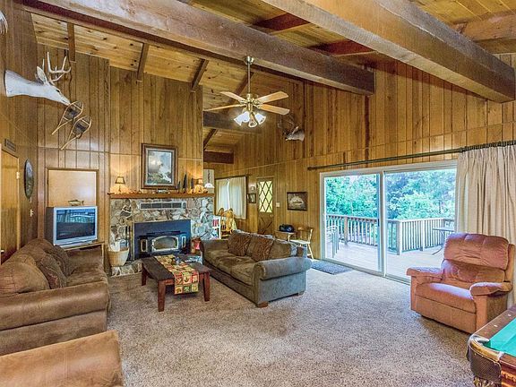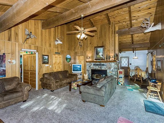Experience life on the Rock! .56 Ac oversized double lot on granite shelf. Fully furnished cabin has a great rental history! A service elevator allows easy transport of supplies to the main level upstairs with 3 bedrooms and 2 bathrooms. Mostly-open floor plan with a pool table to entertain your guest. A large stone fireplace has wood-burning insert. Vaulted open-bean ceilings give cabin-like feel. 2 more bedrooms and a bath on the lower level for large gatherings Spill out onto the large wrap-around deck with furniture included in the sale. Make an appointment to see this unique cabin with dual-pane windows, forced-air heating and some updated flooring. This is your opportunity to ROCK OUT in comfort in the mountains!