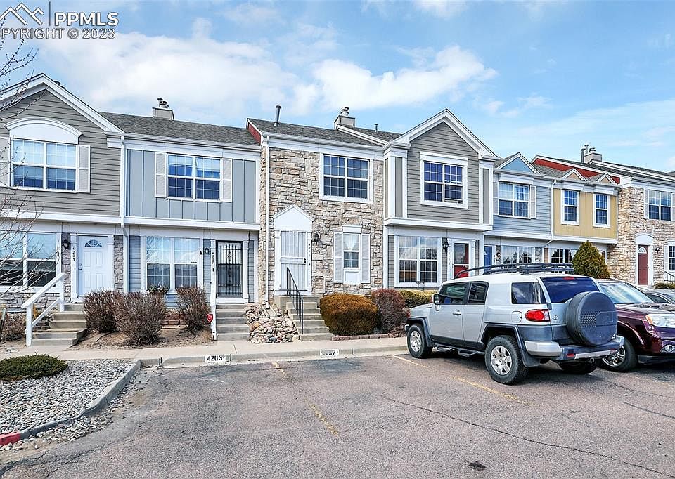Come Take a look at this Cozy home in the heart of Colorado Springs. The home is central to everything! Close to Military bases, shopping, eating, and more! This home is a short commute to anything you may possibly need. As you walk in you are greeted with a welcoming entry space, followed by this updated kitchen with a huge pantry! Looking for a quick breakfast to get out the door? Kitchen has a cute breakfast bar. Also space for a dining area to enjoy a evening diner. Living room is spacious for relaxing and enjoying your downtime with a stone wood burning fireplace. Upstairs features this insanely huge master suit to have a vanity or sitting area, also an adjoining bath with hallway access as well. The second bedroom is perfect for a guest bedroom, office, or nursery. My favorite feature is the unfinished basement with a bathroom rough in. You can use this space for storage which is commonly a necessity for most Americans, or you can finish this space and add another room, bathroom, and or family room. Last but not least there is a back patio area with a deck, and yard space, and storage space with a gate to access the well maintained common areas. Within this community HOA includes the park, playground and Pool!! Who doesn't want a pool in Colorado Springs? The summers seem to get hotter every year. Thank you for your interest, and looking forward to you coming to look!!