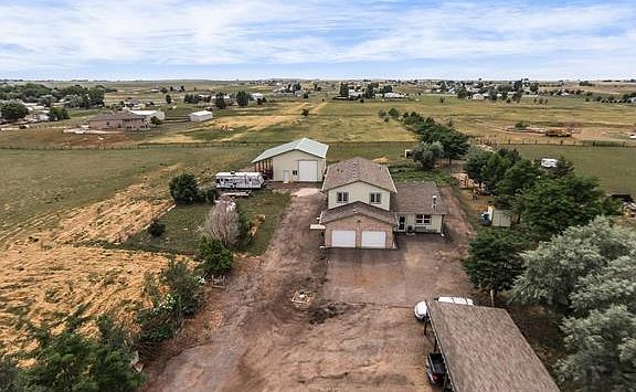 Country quiet and City close. Almost 6 acres of serenity with gorgeous sunrises and spectacular sunsets are yours with this beautiful custom built home. Open and bright main floor with a main floor master, formal living room, huge kitchen and inviting covered front porch complete with wood burning stove. Perfect for those cold winter days and nights when you just want to enjoy the views. Spacious loft is the center of upstairs living consisting of 4 very nice bedrooms and a full bath. Huge basement, well lighted with tall ceilings. Perfect hobby shop or unlimited remodeling opportunity. Need to park your RV, check out the newer over sized custom built garage. Plenty of room for all of your projects--restore a classic vet, store your classic car or truck, work on any of a number of projects supplied with it's own electrical panel, reinforced slab, and the opportunities are limitless. Even the chickens here enjoy the best built coop in Colorado! Seriously, check it out.