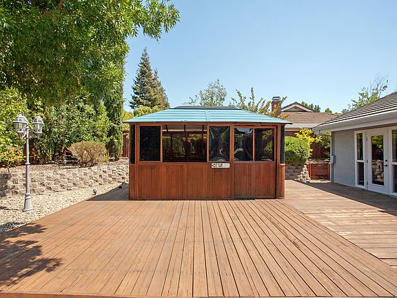 4211 Cuneo Drive is a gorgeous, light-filled 4 bedroom, 2 bathroom rancher located in a quiet Concord neighborhood close to many amenities, like Peet’s Coffee, Trader Joe’s, Costco and some great public parks and local community pool. The open floor plan, handsomely landscaped front yard and expansive backyard create the perfect family home that is ready to entertain! As you arrive onto the attractively landscaped front yard, boasting Japanese maple, lavender, trellis roses, jasmine and flowering trees you immediately feel at peace. From the entryway, you walk into an expansive and light-filled living room and adjoining dining room. The high vaulted ceiling and recessed lighting give a contemporary feel, while the views of the yard give you the peaceful feeling of home. The kitchen, with ample wood cabinetry and large breakfast bar seating, opens to the large family room making this the quintessential hangout room! 4211 Cuneo takes advantage of California weather with the indoor/outdoor living at its finest! An outdoor sprawling Redwood deck and pergola, deluxe gazebo with hot tub and an estimated 384 Sq. ft. workshop make Cuneo a homeowner’s paradise.