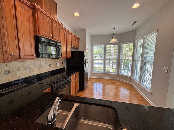 Recently painted one story 2 bedroom, 2 bath villa home in beautiful Carolina Preserve. Hardwood floors throughout this open floor plan with loads of natural light. Plenty of space in the primary bedroom with private bath, Walk in Closet, and dual vanity. Guest bedroom and secondary bath all on one floor. Kitchen features granite countertops, stainless appliances, loads of cabinets and a breakfast area which overlooks the front yard. Home features a private extended covered patio to enjoy the wooded backyard views with walking trails throughout the neighborhood. Neighborhood amenities feature a 35,000 square foot clubhouse, state of the art fitness center, tennis, pickleball and bocce courts, indoor and outdoor pools, pottery and dance studios and over 120 clubs. Carolina Preserve provides residents with an extraordinarily active lifestyle. Small dogs negotiable. Tenants are responsible for utilities.
