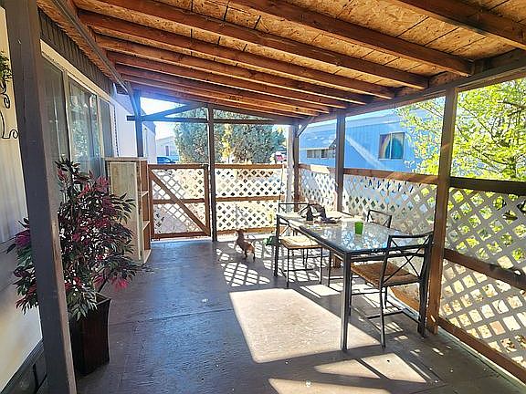 2 bedroom 2 bath with bonus room and Large covered porch. Updated floors. Year old water heater. All appliances including washer and dryer. All clean and in very good shape. Bedrooms are on opposite ends of trailer both with full baths. Great layout. Swamp cooler works but it is old and will probably need to be replaced. Other that that this is a very Solid trailer with good bones. No leaks, floor is solid. Neighbors are descent. Potential buyers must be approved by park before sale. This process is free and easy. Located in Thornton.