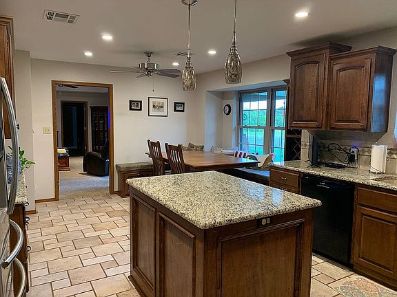 Beautiful ranch style home on 40 acres! Perfect home for those with livestock, want land for hunting or just some space to spread out. This beautiful 3 bedroom/2.5 bath property includes remodeled kitchen, updated bathrooms, safe room, lots of storage, 1200 sq. ft. metal barn, recently built 4 bay shed, pond and steel pipe welded corral. Acreage is fully fenced and has been used for grazing.