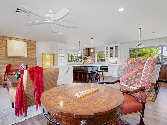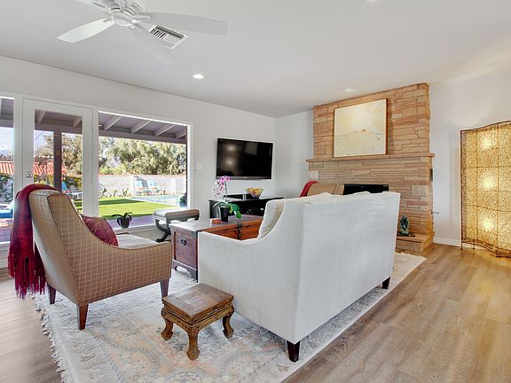 Custom renewal by Sin Tiempo Enterprises in one of the best midtown neighborhoods on a huge park like lot. The home has retained the charm of its era, but is a new home inside with gourmet kitchen, custom cabinets, quartz counters, GE Profile appliances and two sinks. Original Kay Mallek road runner tile backsplash. The open floor plan is inviting and opens to the private resort back yard. The turquoise jewel of a pool is finished with Pebble Tec and has travertine coping and is surrounded by low care turf. The paradise includes mature fruit trees, a raised bed vegetable garden, lighted pergola and Bocce court and dining areas. You must see the lighted huge Sumac tree at night! You won't want to leave the fire pit on cool desert evenings. The home upgrades include a split bedroom plan and brand new Master suite and bath, water softening system, two tankless water heaters, high end lighting, water harvesting system with two 850 gallon tanks, a list of all the upgrades is provided when you tour the home. You must see it!