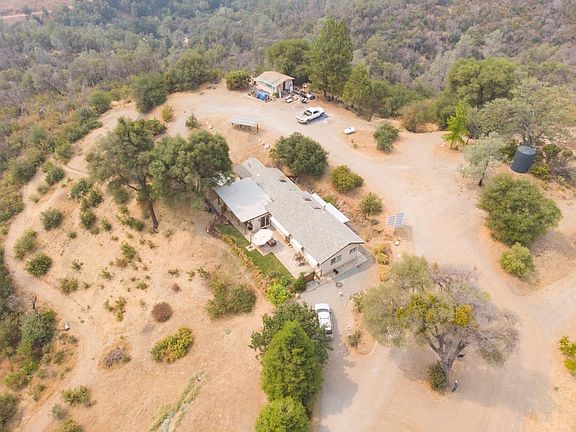 Live off the grid! Peaceful mountain top retreat Only 4 miles to town! This unique property combines 2 lots and totals 38 acres and 2 unpermitted homes with breathtaking views. Numerous fruit and nut trees. Abundant water in 2 seperate wells with mineral and water rights. 5000 gallon water storage tank Well maintained roads and gates. Main house is 4 bedroom, 2 bath. Solar independent. Large master bedroom with walk in closet. Beautiful eat-in kitchen with stainless steel Bertazzoni Range/Oven, Quartz countertops with plenty of counter space and a view! Wood stove heating, new washer and dryer. Fenced front yard with lawn and beautiful stamped concrete patio. Level parking and additional build sites. Second smaller home is a story 2 bedroom, 1 bath. Tin roof and Solar independent. Adorable kitchen with everything you need. Lots of storage upstairs. Propane heat. Lots of parking, garden, 2500 gallon water storage tank. All furniture and appliances available to buyer.