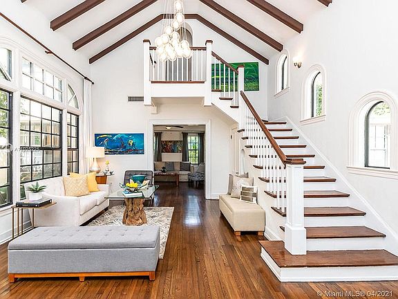 Welcome to this charming Miami Beach updated Old Spanish style home. Move-in-ready gem boasts 3 Bedrooms, den/office +2.5 Bath Rooms, Gourmet kitchen high end appliances, huge island, vaulted ceilings and hardwood floors, fireplace. Outdoor sound system, bbq & mosquito repel system. Lavish landscape + lighting surrounds the resort like pool area - relax in privacy and great for entertaining. Tucked away from the crowds of the city, yet conveniently located to shops, dining, ocean as well as I95. Master Bed at ground level with shower & tub. Two bedrooms upstairs share bath w/ tub. Rent includes bi-weekly lawn & weekly pool service.