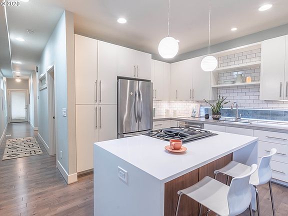 Fantastic 2015 Modern w/rare main floor bedroom & bath nestled in the heart of Roseway neighborhood.Fab kitchen w/cook island,SS appliances,extensive cabinetry,tile.High ceilings,vaults,amazing windows,private deck w/gas fireplace.Huge owner's suite w/walk-in closet,sitting area,deck.Second en-suite & laundry up offer so many options. Low maintenance yard,attached garage.Perfect condo/townhouse alternative on lovely street. All the eateries & shopping on Sandy and Fremont just minutes away.