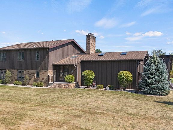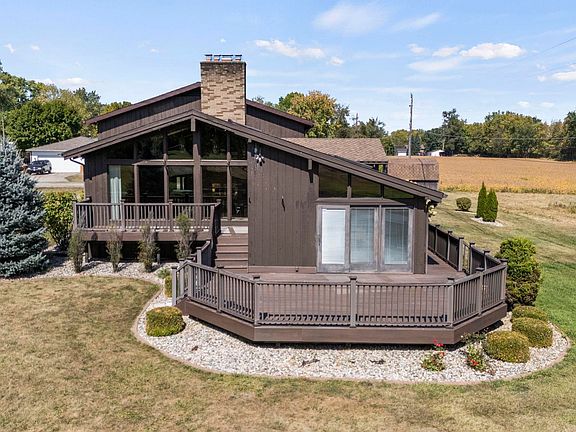 A rare and incredible opportunity to own this slice of paradise, set behind 14 tee. A quality crafted mid-century home offering panoramic, one-of-a-kind views of Orchard Ridge golf course. The sunroom and wraparound deck second as observatories, to admire the course’s beauty at any season. This spit-level floorplan boasts 3,404 finished square feet, 3 bedrooms, 2.5 bathrooms, two living spaces, a formal dining room and office. The perfectly preserved 70s charm is to be appreciated, a grand double-door entry, floor-to-ceiling brick detail surrounding a gas-log fireplace, vaulted ceilings treated with gorgeous stained beams, a south facing wall of windows, galley kitchen and built-in bar. Every space in this home offers a little something extra, whether it be a custom detail, extra room for comfortability, or exceptional closet space. The primary bedroom features two closest and a large en suite bathroom, the two secondary bedrooms share a jack-n-jill. The lower level of the home was recently updated with luxury planking, Spanish lace ceilings, recessed can lights, freshly painted white trim and comes plumbed for a wet bar! The garage is 24x20, offering room for vehicles and storage. All kitchen appliances, washer & dryer, the lower-level fridge and storage shed remain in the sale. The roof and all mechanicals are newer and in great condition. This home is ready for some personal touches by its next lucky owner.