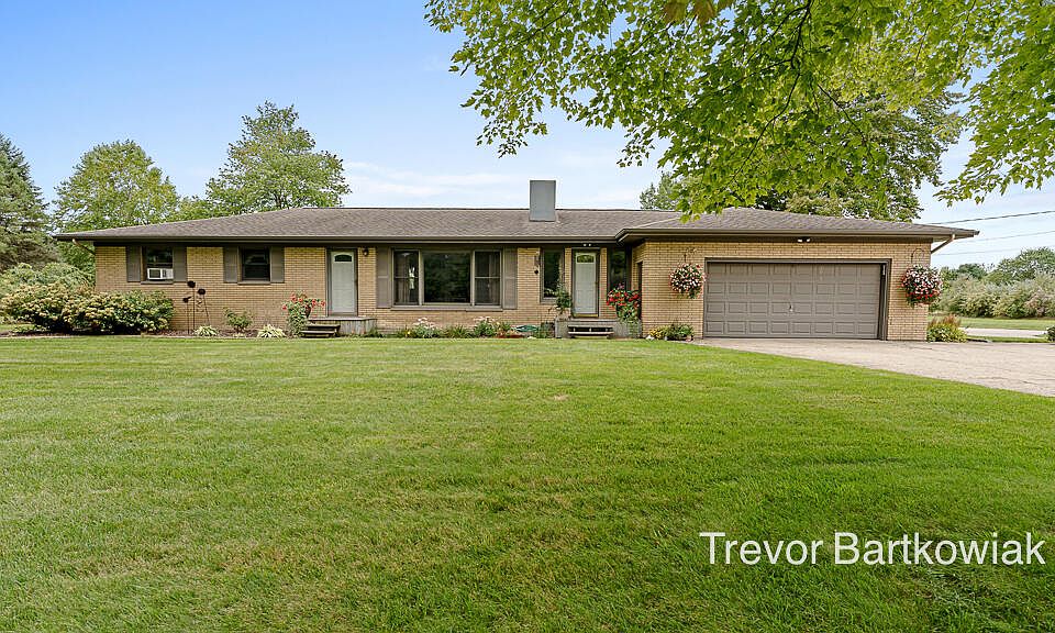 Welcome to your dream home at 4211 S Brooks Rd in beautiful Muskegon, MI! This property is nothing short of amazing, offering a serene retreat on a sprawling 5-acre parcel with a picturesque pond that wraps around the entire property. Privacy abounds, making this an oasis of tranquility. Nature enthusiasts will delight in the pond, stocked with bluegill and teeming with fish, perfect for fishing or simply enjoying the calming waters.Step inside the meticulously maintained brick ranch home, boasting 1,752 square feet of well-designed living space. This 4-bedroom, 2-bathroom gem has been thoughtfully renovated, with a kitchen that's a chef's dream, featuring stunning white shaker cabinets and luxurious quartz countertops. Warm up by the cozy wood fireplace during the cooler months. You'll appreciate the convenience of the attached 2-stall garage, offering shelter for your vehicles year-round. Step out onto the inviting patio, complete with a charming pergola, and take in the meticulously landscaped yard, featuring a sprinkling system connected to a well for easy maintenance. One of the biggest highlights of this property is the expansive 40x120 pole barn. This is a game-changer for those in need of ample storage space for all their toys and equipment. Plus, there's an attached storage area providing this home's features are further enhanced by Anderson windows, ensuring energy efficiency and durability. You'll love the convenience of being in close proximity to the Westwind Golf Course, local eateries, downtown Muskegon, and the stunning Lake Michigan shoreline. In additional 560 square feet for your convenience. The home's features are further enhanced by Anderson windows, ensuring energy efficiency and durability. You'll love the convenience of being in close proximity to the Westwind Golf Course, local eateries, downtown Muskegon, and the stunning Lake Michigan shoreline.