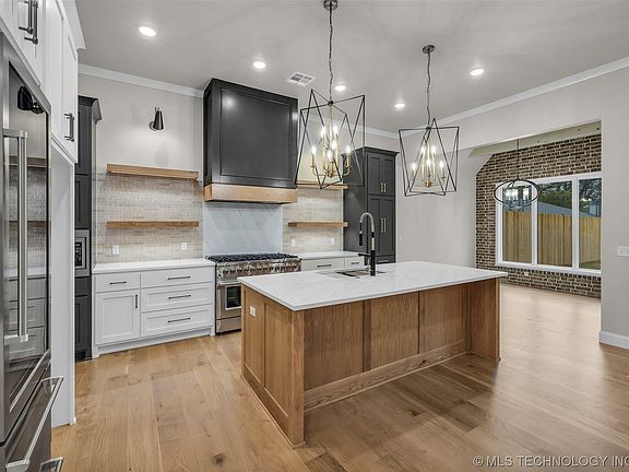 Welcome to the latest offering by one of Tulsa’s most admired Midtown builders! High-end New Construction with modern, timeless design. Each element and finish is thoughtfully crafted from foundation to shingle. We love the open living area with brick accent walls and gorgeous white oak hardwood flooring. The kitchen is an entertainer's delight, featuring a 8-burner gas stove, double oven and oversized beverage fridge. The primary suite is a spa-like retreat, complete with floating his and her vanities, along with a generously proportioned tub and shower. An additional bedroom with an en suite is also situated downstairs, while three more bedrooms are located upstairs. A dedicated office or flex-space on the main level adds to the functionality of this perfectly curated home. Meticulously designed, every inch of space is maximized with high-end finishes throughout. All of this within walking distance of your favorite midtown Tulsa hotspots!
