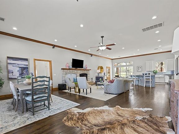 Your In-Town Acreage Dream | Custom home on 2.42 acres with close proximity to I-40 & Tinker AFB. You'll love the 4 car garage and 24'x24' insulated & temperature controlled workshop w/ overhead door, for all your hobbies, toys, boat, or car collection, you'll have the space to store it all. The lot features several mature trees, fire pit and covered patio with plenty of room for outdoor entertaining. A covered front porch and beautiful custom double doors lead you into a huge open living area with soaring ceilings. The whole house has been freshly painted w/ new carpets in light and bright neutral colors. The open living area with 11' high ceilings and loads of natural light features beautiful real oak hardwood floors, stone fireplace and flexible layout to enjoy entertaining the way that suits you best. The updated kitchen overlooks the living area via a large island with ample seating for informal family meals. Enjoy views of natural surroundings from every room. You'll feel like you are out in the country even though you're near the city's conveniences. The lower level has 3 super-sized bedrooms including a primary suite with ample ensuite bath and large walk-in closet. Two other bedrooms are located on the opposite side of the home and share a guest bathroom. Upstairs you'll find a flexible bonus living area at the top of the stairs & another giant bedroom that could serve many alternate uses plus a 3rd full bath. East half of property has potential for lot split with frontage on Post Rd. Upgrades include tankless hot water, updated main living HVAC, irrigation system & landscaping plus recently replaced roof in 2023.