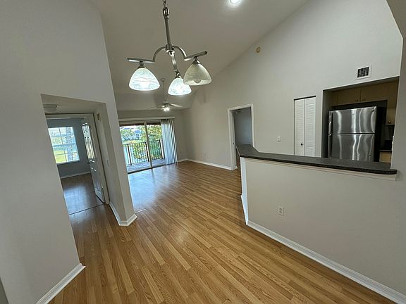 Stunning lake viewsSouthern exposureVaulted ceilingsOpen kitchen layoutWood-laminate flooringModern dining room lighting