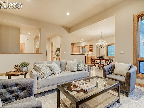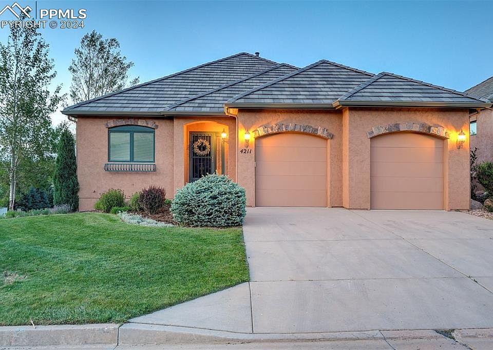 Desirable Ranch Patio Home in Exclusive Award Winning D12 School District. Cradled at the base of Cheyenne Mountain with Pikes Peak Views on a cul-de-sac that provides panoramic breathtaking sunsets and lit city skylines. This stunning Broadmoor Vista home boasts high-end finishes such as a floor to ceiling stone fireplace with vaulted ceiling, Pella windows with interior blinds, hand troweled walls, and arched doorways. Adding an unfinished basement with nine foot ceiling makes this the perfect balance for those who wish to customize. Be greeted by a warm and open floorplan filled with natural sunlight throughout. The generous gourmet kitchen will accommodate both dinner parties and intimate dining with ease thanks to the ample granite countertops and luxurious solid alder cabinets. Primary Suite is a homeowners sanctuary offering privacy from the bustle of life and modern amenities. This is the ideal corner unit because it allows for all basement windows to be garden level without window wells. No maintenance living with stucco exterior, tile roof, and composite deck. Look for other HOAs that are priced similarly which care for snow removal, trash removal and landscape. Schedule your visit now to be impressed with all this property has to offer!