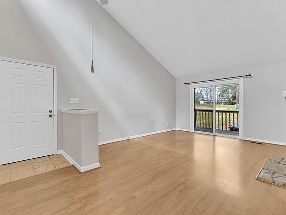 This end-unit, one-story condo in The Oaks subdivision offers the perfect blend of comfort and privacy! Inside, vaulted ceilings and skylights provide the living room with natural light, creating an open, airy space complemented by a cozy fireplace. The open kitchen features plenty of cabinet space and a dining area. The spacious primary suite includes an ensuite bathroom, while an additional bedroom provides flexibility for guests, family, or a home office. Enjoy outdoor living on the large deck with an outdoor storage closet and a private backyard. Adjacent to Lake Johnston's trails and activities, as well as I-40 and I-440 for a quick commute anywhere in Raleigh, this condo offers both convenience and tranquility in an ideal location!