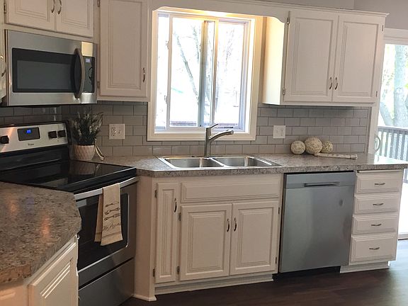 Family friendly ranch home with 3 bedrooms on the main! Total of 4 bedrooms, 2 baths and over 1800 square feet of newly remodeled living. Completely renovated from top to bottom and inside and out. Handy kitchen has new stainless steel appliances and eating area with glass doors to deck and huge fenced in private backyard with mature trees and landscaping; backs up to the bike trail! Offers terrific outdoor summer living and general play. Lower level family room is spacious with built-ins and rec area. Stylish design and modern finishes including tiled showers, painted woodwork and subway tile; it's bright, clean, and cheery! Newly painted siding, new windows, new floor coverings, new appliances, new water heater, new garage door, new doors, new trim, fresh paint and the list goes on! Close to JFK Elementary School and park. Convenient location to most everything! Immediate occupancy. *Buyer agents welcome