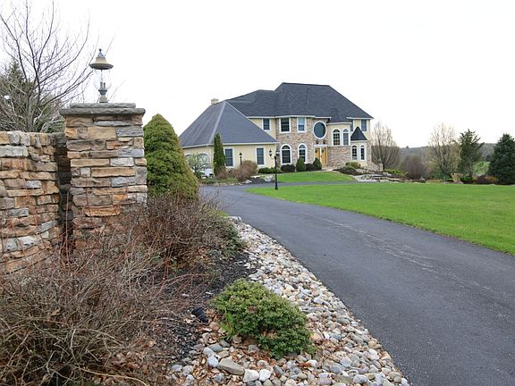 Exquisite Manor Home situated on 2 acres creating grand views, privacy & outdoor living enjoyment. Over 4600 SF includes 3 floors of beautifully appointed living space including massive finished, walk-out basement providing 5th Bedroom, full Bath, media room & gym plus access to tumbled marble patios and gardens. Impressive custom carved double front door with portholes of art glass. Soaring foyer continues European feel with architecturally designed archways & elevations plus grand staircase built into the turret providing open views to all directions. Hardwood floors throughout most of 1st floor including dining room, living room with marble fireplace & beautiful designer kitchen complete with tiered island & Blue Pearl granite countertops. First floor family room with limestone fireplace & high mantle. Second level provides an opulent master retreat, princess/guest room, 2 additional bedrooms & laundry room. *** ENJOY THE VIRTUAL TOUR! *** This is a MUST SEE HOME! HOA Dues are $500 per year.