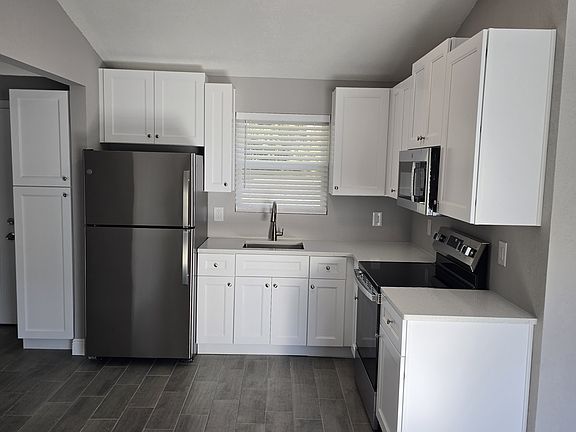 Completely remodeled home with new kitchen, new appliances, new doors, new windows, new roof, new air conditioning, new flooring and new bathroom. Freshly painted on the interior and ready for new tenant. Property sits on an acre of land. Owner pays for lawncare. House is on well so no water bill. Tenant responsible for power bill. Small cat or small dog welcome.