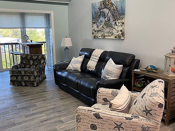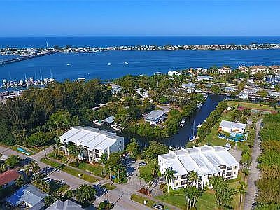 WALK OR BIKE TO AMI ! Beautifully renovated in 2021, waterfront 2BR/2BA condo, with a 40FT dock space located in Smuggler's Landing! The rear of the condo has full thermal pane glass sliders overlooking the waterway and a screened-in lanai on the front. This light, bright and updated unit has a 17 seer AC, newer water heater. Plantation shutters and crown molding throughout with wood look ceramic tile floors. The kitchen is brand new with quartz counter-tops and island for additional storage and seating. Glass tile backsplash and stainless appliances. Both bathrooms are updated with new vanities, quartz counter-tops, mirrors and lighting. The guest bath has a cut our for easy access to the shower. Your 40ft. boatslip has easy in and out access and an extended dock space with a dock box, picnic table and small tiki bar for relaxing after a day on the water. The front windows have been replaced with impact windows. Your garage space has room for 2 cars or you can also store your boat or golf cart. A enlarged storage shed has plenty of room for toys and tools! Smuggler's Landing is a quiet community located across the street from the Cortez Fishing Village, one of the last working fishing communities in Florida. Here you can find many local restaurants with alfresco dining, fresh seafood and the Florida Maritime Museum. In minutes you are across the Cortez bridge to gorgeous Anna Maria Island. Visit by appointment only. Will update listing if under contract.