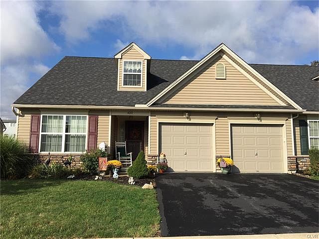 Welcome to Belmont Glen, a 55+ Adult Community. Time to relax and enjoy life in this 2 bedroom, 2 bath twin ranch home, which was a model home. Comfortable one floor living and no maintenance worries. Large kit with SS appliances, including refrigerator. New gas stove/oven Mar '16. Nice size master suite with walk in closet. Ceiling fans and large windows in both bedrooms. Spacious living room/dining room opens to the outdoor living space. Enjoy morning coffee on the lovely private patio area with retractable awning (remote) and screening for blocking the sun. There's also an additional paver patio area for extended outdoor living. Economical and efficient propane gas heat, 2 car garage with openers. Convenient location with access to everything! Don't miss seeing this home!