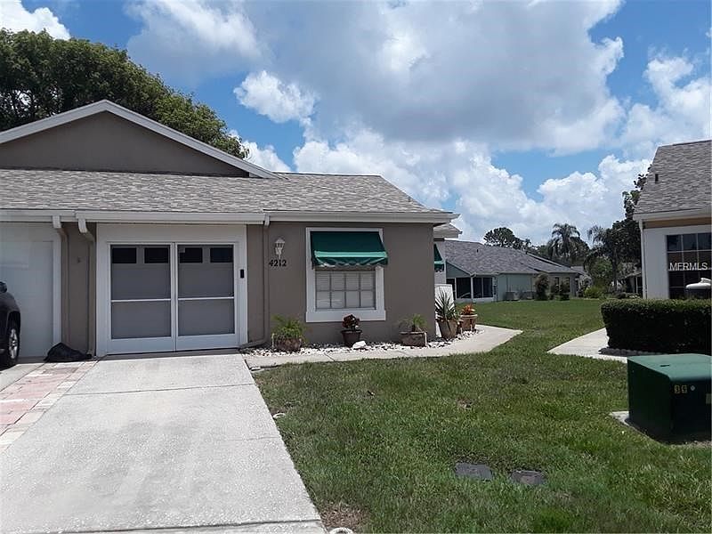 STUNNING Maintenance Free Villa in Millpond Estates. This villa feels like home as soon as you walk thru the front door with the high vaulted ceilings and open floor plan makes it feel light & airy and roomy. The flooring is Australian Pine thru out except in kitchen & bathrooms are tiled. The attention to detail is continued thru out...Ornate wood molding around windows, decorative antique electric fireplace in Living Room, french door from living room to enclosed lanai with brick flooring then leading to a back yard patio to do your own grilling. Updated bathrooms. ROOF 2 years new, AC 2 years new , WATER HEATER 2 years new & exterior has recently been painted. Villa can be purchased FULLY FURNISHED. Just bring your tooth brush and move in!!! MINT CONDITION, Won't last long.